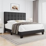 - Clean-lined simplistic design with stylish box tufted upholstered headboard